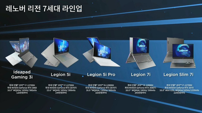 이번에 한국 레노버가 출시하는 레노버 리전 7세대는 리전 7i와 리전 슬림 7i, 리전 5i 프로, 리전 5i, 아이디어패드 게이밍 3i 노트북 5종과 리전 T5i 데스크탑 제품으로 구성됐다.