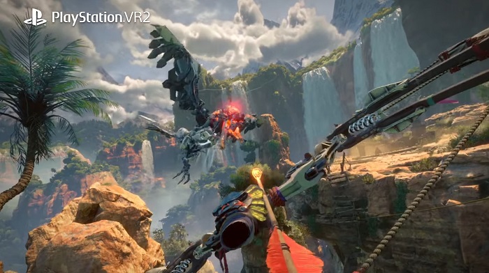끝으로 PSVR2 개발 당시부터 예고된 바 있는 호라이즌: 콜 오브 더 마운틴의 플레이 영상이 공개됐다. 해당 영상에서는 신비스러움으로 가득한 호라이즌의 세계를 누비는 모습이 고스란히 담겨져 있으며 바위를 오르고 먼 곳으로 뛰어넘는 장면, 그리고 밧줄을 타고 오르는 장면 등을 확인 가능하다. 또한 주인공 캐릭터인 리아스가 활로 몬스터와 전투를 벌이는 모습도 볼 수 있다.