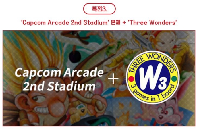 플레이스테이션4, 닌텐도 스위치 '캡콤 파이팅 컬렉션' 패키지 제품 구매 시 한정수량 특전으로, 호화 아티스트들이 작업한 수록 타이틀의 신규 리믹스 트랙과 캡콤 일러스트레이터들의 신규 일러스트를 ‘뮤지엄’에서 즐길 수 있으며, 여기에 추가로 ‘캡콤 Arcade 2nd Stadium’ 본체와 ‘Three Wonders’ 제품 코드까지 제공될 예정이다.