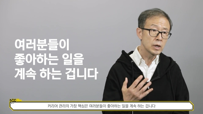 그는 이직과 전배를 밥 먹듯이 하는 한 치 앞도 보이지 않는 게임 회사에서 어떻게 정년퇴직까지 할 수 있었는지 충분히 의문점을 가질 수 있다. 경력 관리를 어떻게 해야 하는지에 대한 주제는 본인에게도 참 어려운 주제라며 강연을 시작했다. 이후 강연은 정해진 몇 가지 질문에 대해 답을 하는 방식으로 진행됐다.