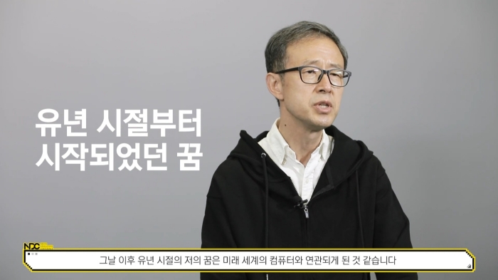먼저 어떻게 게임 회사에 첫발을 딛게 되었는지에 대한 질문에는 어린 시절에서 답을 찾을 수 있었다고 설명했다. 초등학교 때 뒷골목에서 다른 아이가 '미래에는 컴퓨터에게 궁금한 걸 물어보면 답을 종이에 찍어 출력해 준다'라고 말하는 걸 듣고 그런 게 어딨냐며 따져 물으면서도 속으론 내심 신선한 충격을 받았다. 그날 이후 유년 시절의 꿈은 미래 세계의 컴퓨터와 연관되게 됐다고 회고했다.
