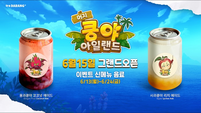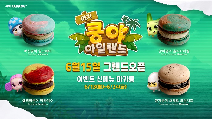 넷마블 자체 IP(지식재산권)'쿵야'를 모티브로 한 이번 메뉴는 '용과쿵야 코코넛 에이드', '사과쿵야 리치 에이드' 음료수 2종과 마카롱 4종(버섯쿵야 얼그레이/양파쿵야 솔티카라멜/샐러리쿵야 티라미수/완계쿵야 오레오 크림치즈)이다.