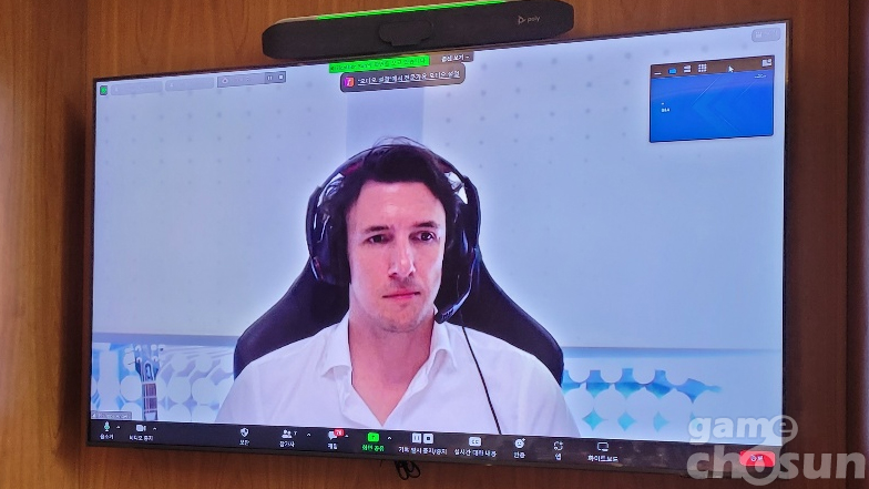 화상회의 형식으로 참여한 필립 앙겔리 이사 = 게임조선 촬영