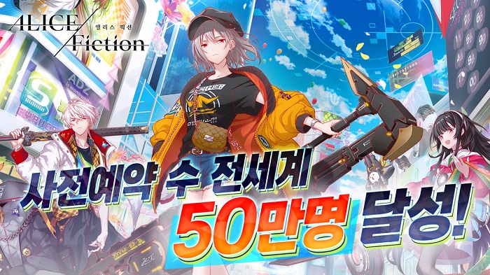 한편, 앨리스 픽션 공식 트위터를 팔로우하고, 해당 캠페인 트윗을 리트윗하면 참여 가능한 앨리스 픽션 사전예약 트위터 캠페인도 진행 중이며, 이번 사전예약 50만 명 돌파를 기념한 보상안과 문화상품권 증정 이벤트 등 게임 관련 정보는 앨리스 픽션 공식 카페’를 통해 확인할 수 있다.