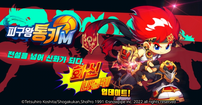 [자료제공 = 스노우파이프] 스노우파이프(대표 김정익)는 23일 스포츠형 RPG '피구왕통키M'에 신규 신화 캐릭터인 ‘화신 나통키’ 캐릭터를 추가한 업데이트를 진행하고 이와함께 너구리 게임 등 다채로운 이벤트도 진행한다고 밝혔다.