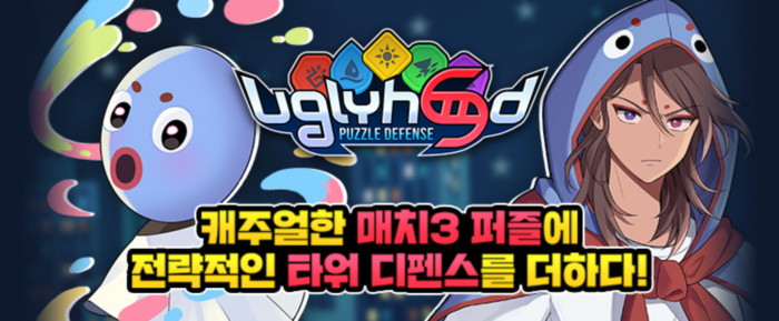 ‘어글리후드: 퍼즐 디펜스’는 네이버웹툰 '어글리후드' IP를 원작으로 한 게임으로, 매치3 퍼즐에 타워 디펜스를 접목시킨 독특한 게임성을 가지고 있다. 모바일 게임에서는 드물게 80일 간의 베타 테스트를 거쳤으며, 원스토어 우수 베타 게임 선정 및 구글 창구 프로그램 4기 선정 등 대외적으로도 작품성 및 기술력을 인정받았다.