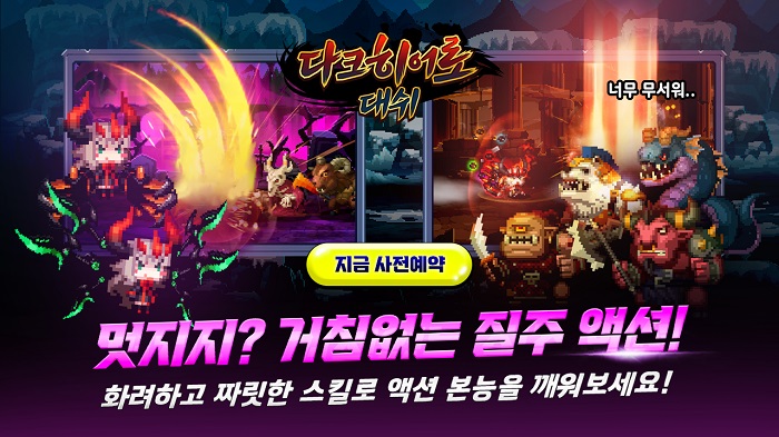 [자료제공 = 블루포션게임즈] 블루포션게임즈(대표 정재목)는 디제너레이션엑스(대표 정재상)에서 개발한 방치형 RPG “다크 히어로 대쉬”에 대한 사전 예약을 시작한다고 11일 밝혔다.