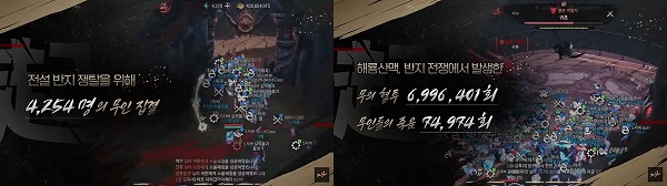 이후, 올해 1월 실시한 첫 전쟁 콘텐츠 ‘붉은 약탈자 귀혼: 반지 전쟁’은 블소2의 방향성을 다시금 확인할 수 있었던 콘텐츠라는 전언이다. 월드 내 12개의 서버 중에 2개 서버에서만 보스가 등장한 전쟁 콘텐츠로, 약 4천명이 넘는 인원이 전쟁에 참여했다. 특정 서버는 연합간 대결이 상당히 치열해 새벽까지 10시간 넘게 이어진 생생한 전투 현장을 확인할 수 있었다.
