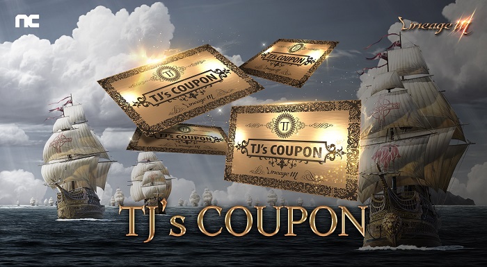 이용자는 ‘전율의 섬광’ 업데이트를 맞아 ‘TJ의 쿠폰’ 4종을 획득할 수 있다. 아데나(게임 내 재화)로 ‘[시즌패스] THUNDER’를 구매하면 ‘신비한 번개의 큐브’를 통해 ▲’TJ 쿠폰-스페셜 상점 장비 복구’ 1개를 획득할 수 있다. 신규 에피소드 기념 출석 체크를 완료하면 ▲TJ 쿠폰-스킬 재합성’ 1개 ▲TJ 쿠폰-스페셜 변신 합성’ 1개 ▲’TJ 쿠폰-스페셜 마법인형 합성’ 1개를 획득할 수 있다.