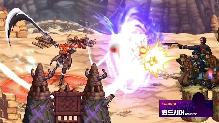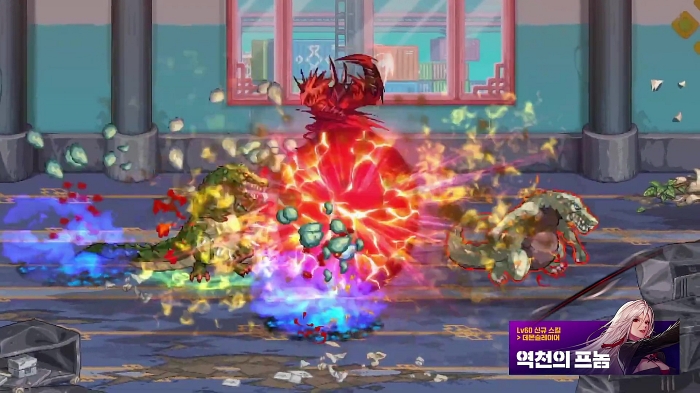 모바일 플레이를 좀 더 편하게 하기 위해서 버튼을 조합해서 스킬을 발동하는 형태로 구성했고, 점프 파생, 특수 발동기 등의 기능을 추가하여 최소 버튼으로도 사용자가 상황에 맞게 플레이할 수 있도록 제작했다.
