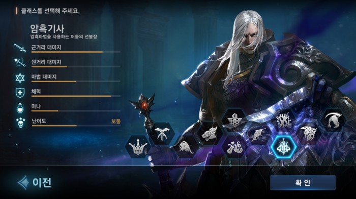 ‘암흑기사’는 ‘켄 라우헬’에게 반기를 든 ‘검은 기사단’출신으로 암흑의 힘을 사용할 수 있는 기사다. 높은 체력과 방어력을 지니고 있으며 검의 물리 공격을 마법 공격으로 치환하는 독특한 전투 방식과 다양한 디버프 스킬이 특징이다. 적의 HP를 식별해 전략적인 전투를 펼칠 수 있는 ‘다크 아이’, 스턴과 동시에 디버프를 줄 수 있는 ‘다크 스턴’, 적 처치 시 체력과 마력을 회복할 수 있는 ‘다크 소울’등을 통해 전황을 바꾸는 중요한 역할을 하는 클래스다.