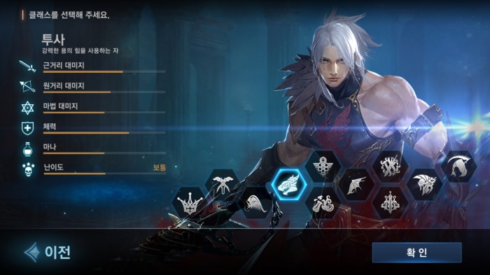‘투사’는 빛의 용 ‘아우라키아’의 수호자로 용의 힘을 사용할 수 있는 용족의 기사다. 확률적 홀드 효과에 텔레포트 불가 효과가 추가된 ‘썬더 그랩(임팩트)’, 약점 노출 단계가 높을수록 높은 확률로 스턴 적용되는 ‘드래곤 스턴’, 드래곤의 힘을 빌어 사용할 수 있는 용인족의 전투 버프 ‘드래곤 각성’ 스킬을 보유하고 있으며, 직관적인 스킬과 쉬운 조작의 근거리 클래스로 많은 사랑을 받았다.