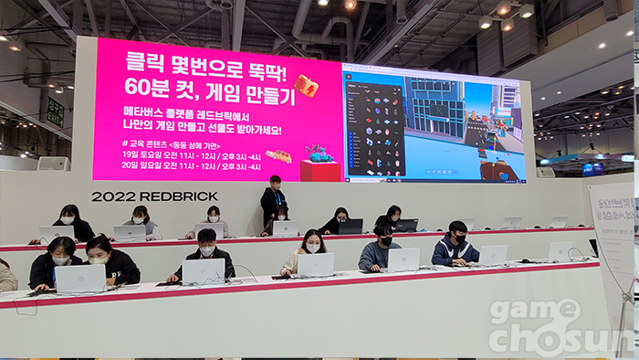 레드브릭 부스에서는 메타버스 플랫폼 레드브릭을 직접 체험할 수 있는 플레이존과 간단한 클릭 몇 번만으로 60분 컷 게임을 만들 수 있는 빌드존을 각각 운영하고 있다. 19일과 20일 양일 간 교육 콘텐츠를 진행하며, 해당 이벤트에 참여 시 자신만의 게임을 만들고 상품도 받을 수 있다.