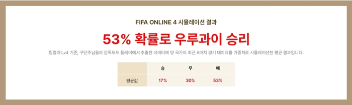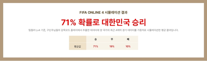 월드컵을 앞두고 넥슨은 ‘FIFA 온라인 4’에 누적된 방대한 감독모드 플레이 빅데이터를 분석해 예선전 승패 예측과 더불어 16강 진출을 위한 상대팀 전략법을 정리했다. 분석은 넥슨 연구조직 인텔리전스랩스의 피파 분석 부서에서 맡았으며, 올 1월부터 9월까지 ‘FIFA 온라인 4’에서 진행된 총 11만 건의 한국 VS 우루과이, 한국 VS 가나, 한국 VS 포르투갈 감독모드 플레이 데이터를 토대로 했다. 넥슨 인텔리전스랩스는 인공지능(AI)과 데이터 사이언스를 연구하고 관련 시스템을 개발하는 조직이다.
