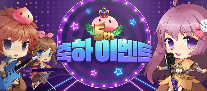 평일과 주말 및 공휴일에 경험치 및 드랍률이 증가하고 여관 서비스 이용 시 획득 경험치가 추가로 상승하는 5주년 기념 버닝 이벤트, 스킬과 스테이터스를 초기화할 수 있는 스탯츄 이벤트, 출석 보상 2배 이벤트도 함께 진행한다.