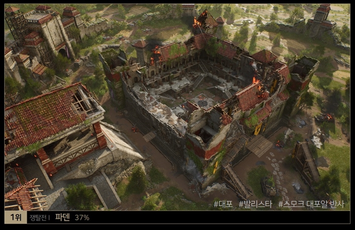 ‘파덴’은 중앙 거점으로 강력한 포탄을 쏘는 대포 거점이 있고 중앙 거점 주위에 원거리 석궁 ‘발리스타’가 존재해 보다 치열한 각축전이 펼쳐지는 것이 특징이다. 중앙 거점을 차지하지 못했더라도 대포로 적을 한 번에 쓸어버리거나 남쪽에 위치한 합류 거점을 차지해 다같이 거점을 공략하는 등 승리를 위한 다양한 전략을 구사할 수 있어 유저들의 호평이 많았다.