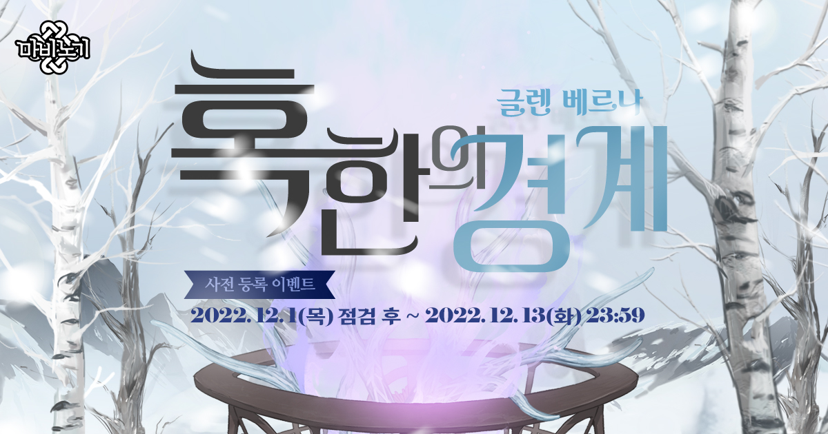 먼저 ‘마비노기’는 겨울 업데이트 ‘혹한의 경계-글렌 베르나’에 앞서 오는 13일까지 공식 홈페이지에서 사전등록 이벤트를 실시한다.