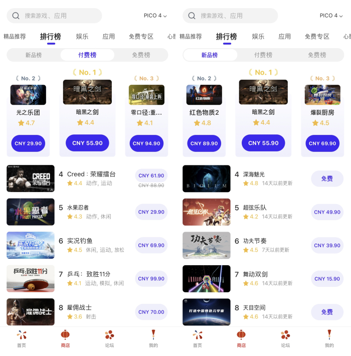 '다크스워드'는 14일(화) 기준, 게임이 출시된 지난 9일(목)부터 줄곧 글로벌 VR 기업 ‘PICO’ 중국 스토어 전체 유료 앱 및 신규 출시 앱 순위에서 1위를 차지하고 있다. 전 세계 VR 기기 시장 점유율 2위를 기록하고 있는 ‘PICO’는 전용 스토어를 통해 다양한 VR 게임 및 콘텐츠의 플레이를 지원하고 있으며, 판매량이나 매출 외에도 스토어에서 책정하는 커뮤니티 관심도 등을 종합적으로 고려해 해당 순위를 정한다.