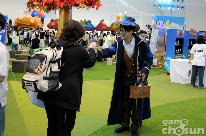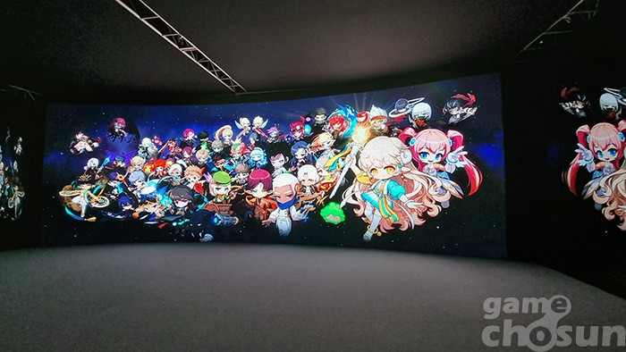 아트홀 1관 '헤네시스 광장'에선 구석구석 배치된 포토존과 각종 체험형 부스를 즐길 수 있다. 주황버섯, 핑크빈, 예티, 돌의 정령, 슬라임 등 메이플스토리를 대표하는 귀여운 캐릭터를 배경으로 사진을 찍어갈 수 있다.