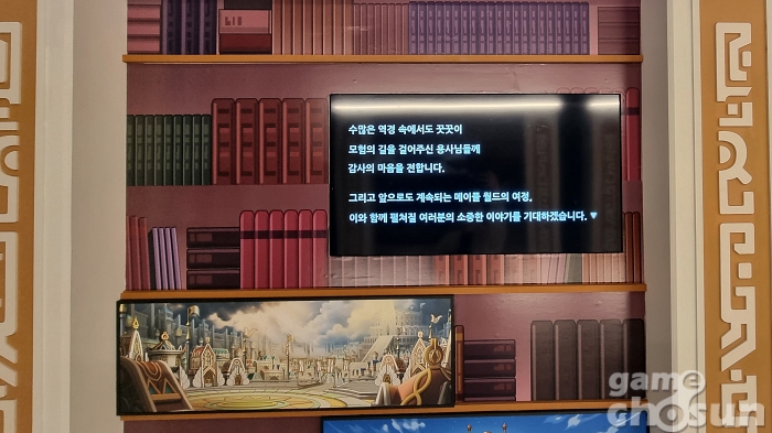 전시관은 총 세 개의 에피소드로 구성되어 있다. '마을의 서'에선 초보자를 벗어나 본격적으로 모험을 시작하기 위해 빅토리아 아일랜드 도착 후 첫 발을 내딛는 리스항구, 활기와 재치를 느낄 수 있는 루디브리엄, 몽환적이고 신비로운 숲 아르카나 등 메이플스토리의 지역을 옮겨담은 포토존과 함께 메이플 월드 각 지역의 모습을 감상할 수 있다.