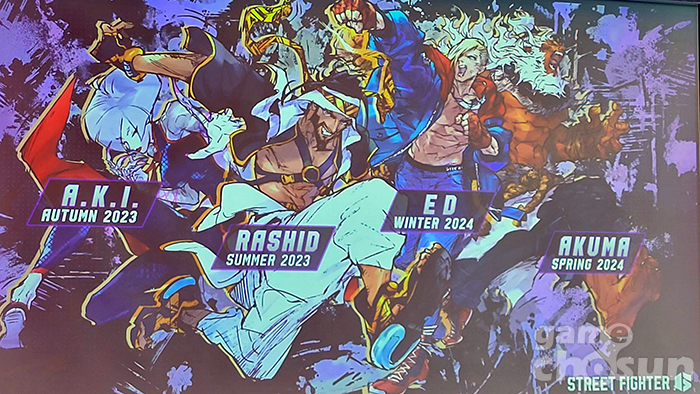 스트리트파이터 6에는 오픈 시 총 18명의 파이터가 참전하며 첫 시즌 패스에서 라시드와 아키, 에드, 고우키가 차례대로 등장할 예정이다.