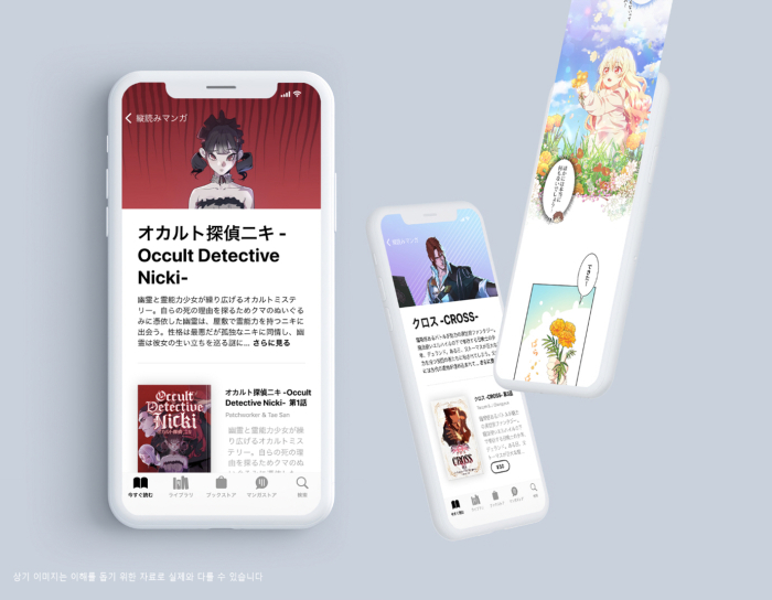 ‘서머너즈 워’ 웹툰은 일본 애플 북스에 신설된 웹툰 장르 섹션, ‘세로 읽기 만화(Tate-Yomi-Manga, 縦読みマンガ)’를 통해 독점 서비스된다. 디지털 미디어에 최적화된 부드러운 스크롤링과 풀 컬러 채색을 특징으로 하는 해당 섹션은 애플 북스 애플리케이션 내 만화 스토어를 통해 제공된다.