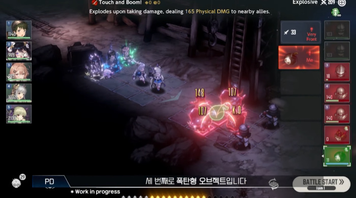 체인 피해 시스템은 피격 때마다 피해량이 증가하는 시스템으로, 턴이 거듭될수록 높은 피해를 줄 수 있기에 강력한 일격을 전략적으로 구상 가능하다. 다음으로 폭탄형 오브젝트는 지형에 배치된 폭탄을 공격할 경우에 주변 적들에게 피해를 입히거나 침묵 등의 디버프 효과를 줄 수 있다. 이와 같이 넉백, 체인 피해, 폭탄 등으로 더욱 전략적인 전투가 가능할 것으로 보인다.