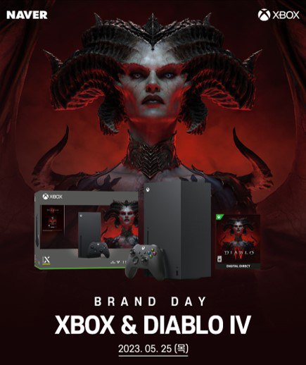 [자료제공 = 에델만코리아] 마이크로소프트 Xbox가 블리자드 엔터테인먼트의 디아블로 IV 출시를 앞두고 25일 네이버 브랜드데이와 함께 쇼핑라이브를 통해 Xbox Series X|S콘솔과 디아블로 IV 번들을 비롯한 다양한 제품 프로모션을 진행한다.