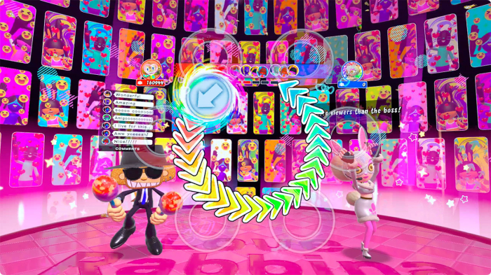 "월드 파티"에서는 온라인으로 최대 8인의 플레이어와 12명의 아미고가 승자연전 배틀에 도전할 수 있다. 당신의 실력을 전 세계에 어필해 보자.