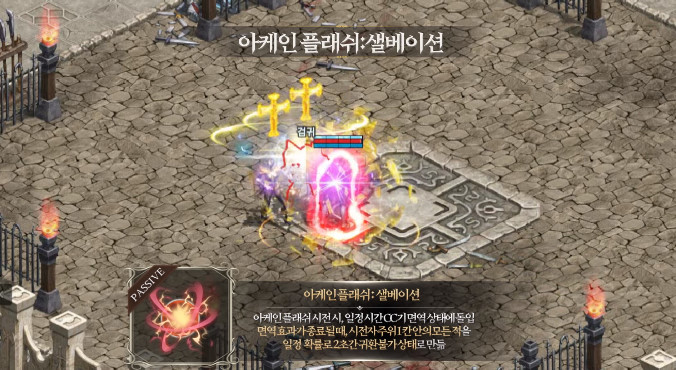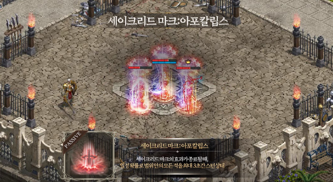 이와 더불어 ▲아케인 플래쉬 시전 시 일정 시간 CC기 면역 상태가 됨과 동시에 면역 효과 종료 시 시전자 주위 1칸 내 모든 적을 2초간 귀환 불가로 만드는 '아케인 플래쉬: 샐베이션', ▲세이크리드 마크의 효과 종료 시 범위 내 모든 적을 일정 확률로 최대 3초간 스턴 상태로 만드는 '세이크리드 마크: 아포칼립스' 등의 패시브 스킬도 보유했다.