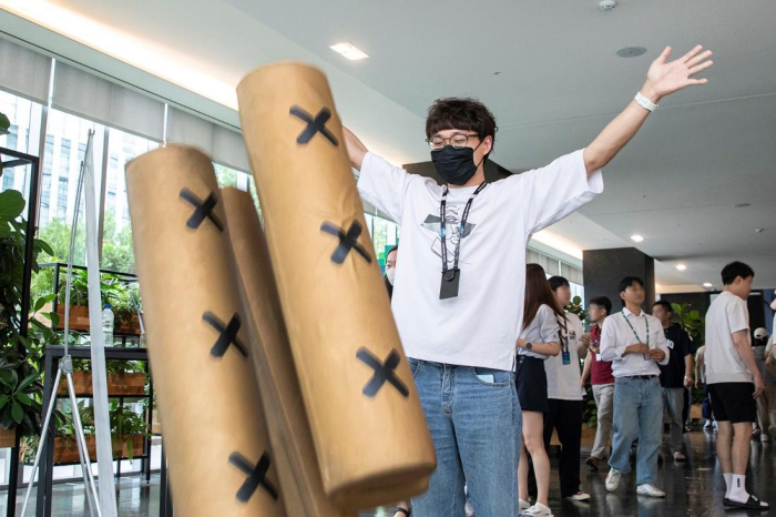 1층 로비가 고구려 시대로 온 듯한 느낌의 전통 체험 공간으로 바뀌었다. 넥슨 복지팀은 21일부터 이틀간 전통놀이 한마당, 먹거리 장터, 흑백사진 셀프 포토존 등으로 구성된 사내 행사를 열었다. 직원들에게 예기치 못한 즐거움을 주기 위해 이벤트 준비도 비밀리에 진행됐다고 한다.