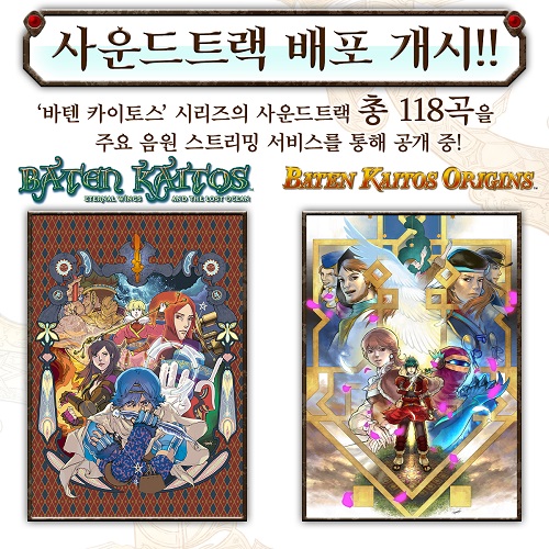 ‘Baten Kaitos: Eternal Wings and the Lost Ocean’과 ‘Baten Kaitos Origins’의 게임 내 음악, 총 118곡을 Apple Music, Spotify, YouTube Music 등 주요 음원 스트리밍 서비스를 통해 감상할 수 있다.
