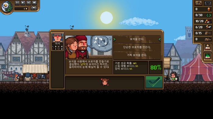 들어온 주문을 처리해 명성 레벨을 올려 큰손의 눈길을 끌어야 한다. 남작의 딸을 위한 가장 아름다운 반지 제작 의뢰나 이 세상에 하나밖에 없는 검을 만들어 달라는 방랑 기사처럼 많은 돈을 벌 수 있는 특별한 주문을 처리하자.