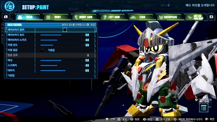 ・"나만의 건프라" 커스터마이즈: 약 20개의 기체로 파츠 조합, 컬러 변경 등
