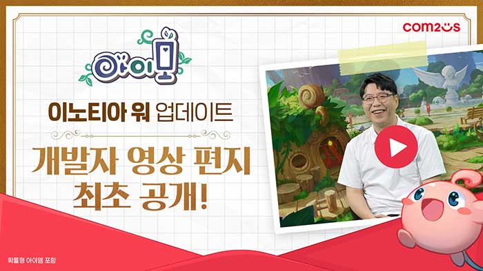 이번 영상에서는 아이모 최초의 라이딩 시스템도 함께 공개됐으며, ‘이노티아 워’의 보상으로 만날 수 있다. 또한 오는 12월 31일까지 사용 시 배부른 펭군 풍선, 장비 스탬프 A·B 등을 얻을 수 있는 쿠폰도 공개됐다.