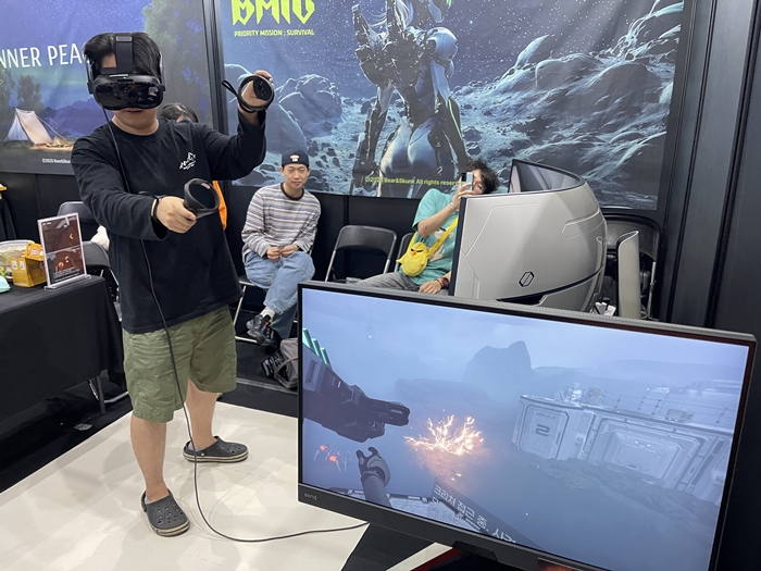 [자료제공 = 베어앤스컹크] VR 게임 개발사 ‘베어앤스컹크(BEAR&SKUNK)’는 지난 5월 22일부터 25일까지 킨텍스(KINTEX)에서 열린 PlayX4에 참가해 자사에서 개발 중인 VR 게임 2종을 B2B 및 B2C 기간을 통해 선보였다. 행사 기간 동안 누구나 직접 시연해볼 수 있도록 마련된 콘텐츠는, VR 마니아층을 겨냥한 VR FPS 게임 ‘BAIT’와 전 연령층을 위한 시뮬레이션 게임 ‘Inner Peace VR’이다.