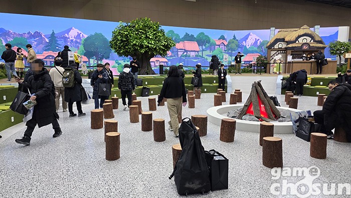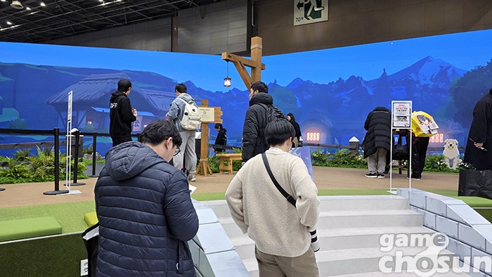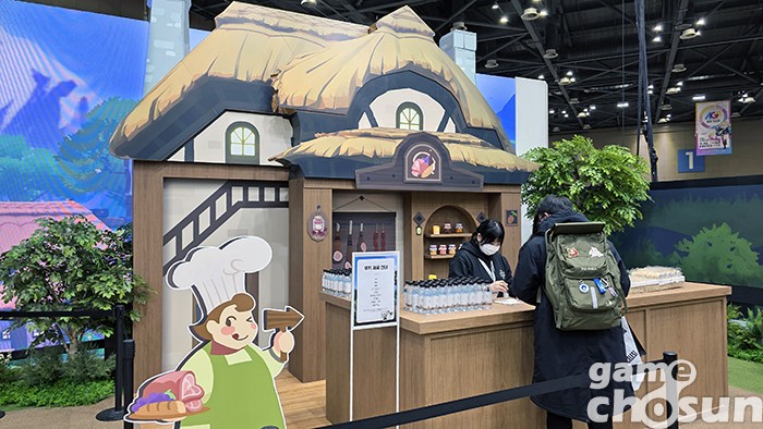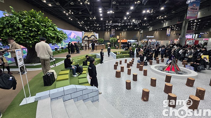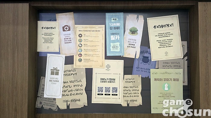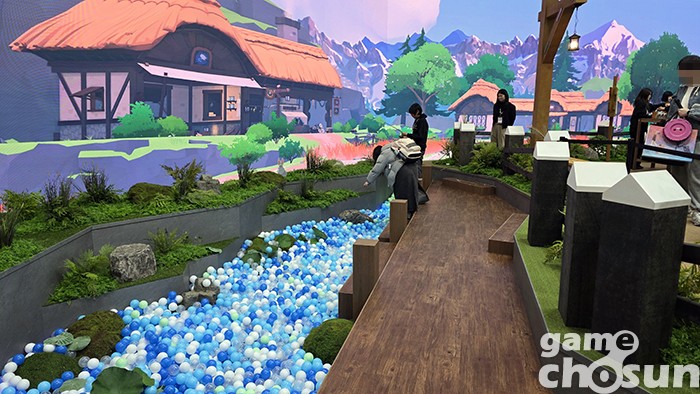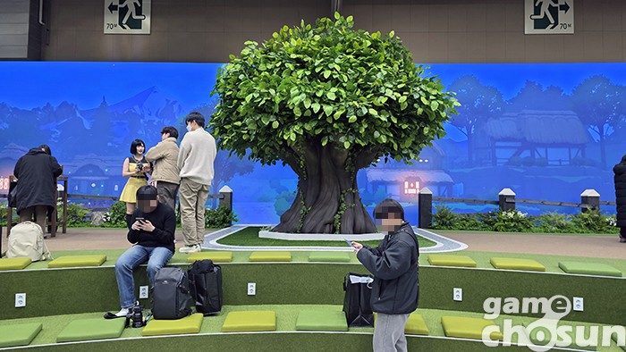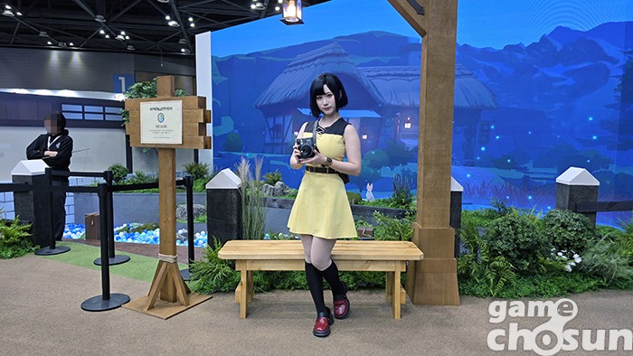 마비노기 모바일 부스는 게이머들의 첫 마을인 티르 코네일 풍경으로 꾸며졌다. 티르 코네일의 중앙 광장과 거대한 나무, 아델리아 천의 낚시터, 케이틴의 식료품점, 그리고 BGM까지 마치 게임 속에 들어온 듯한 기분을 선사한다.