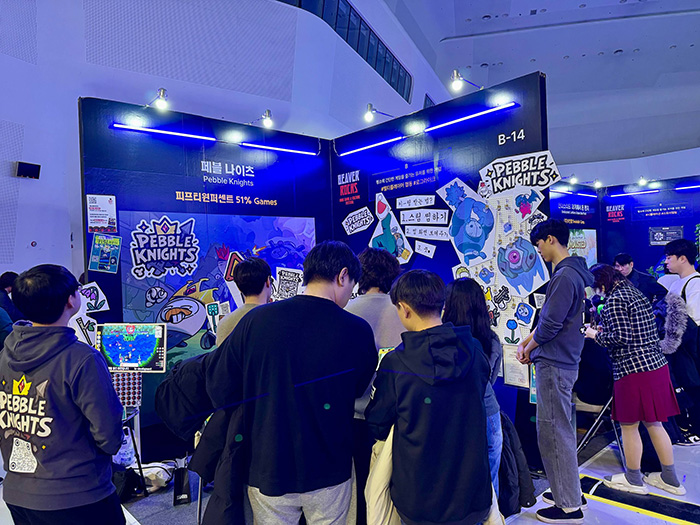 [자료제공 = 피프티원퍼센트] 피프티원퍼센트의 5인 협동 로그라이크 생존 게임 페블나이츠(Pebble Knights)가 지난주 서울 DDP에서 열린 2025 비버롹스 인디게임 페스티벌에 전시작으로 참여해 관람객들의 높은 관심을 받았다.