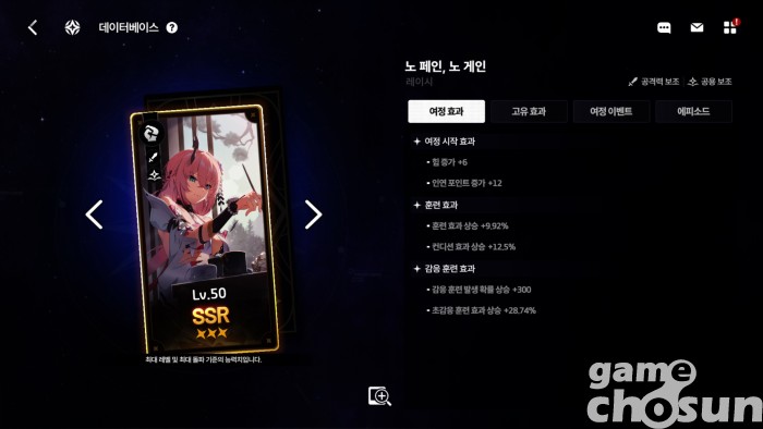 이 중에서 가장 눈여겨봐야 할 효과는 여정 이벤트 효과다. 이벤트 효과는 능력치뿐만 아니라 일반적으로 얻기 힘든 특수 잠재력을 부여하는 경우가 있기 때문이다. 특히 특수 잠재력은 속도와 치명타 확률 등 중요 능력치를 대폭 높여줘 캐릭터를 최고 수준으로 키우려면 반드시 눈여겨봐야 한다.