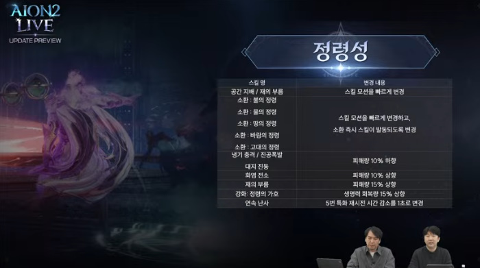 정령성은 좌클릭 핵심 기술의 피해량을 일부 하향하는 대신, 우클릭 스킬과 함께 활용했을 시 효율이 상승하도록 개선했다. 아울러 다른 스킬간의 피해량을 상향 조정하며, 정령 소환 이후 스킬 발동 속도를 개선하고 소환 즉시 스킬이 발동되도록 하면서 전투 흐름을 빠르게 조정한다.