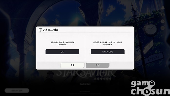 스팀 버전을 설치한 뒤 시작 화면이 나타나면 좌하단 연동 코드 입력을 누른다. 이후 등장하는 메뉴에서 여기에 복사해둔 UID와 CODE를 적고 확인을 누른다. 그리고 다시 모바일로 돌아간다.