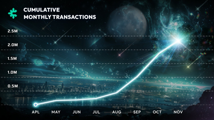 10일 크로쓰 공식 채널이 공개한 지표에 따르면 지난달 기준 크로쓰 체인의 누적 월간 트랜잭션 수는 250만 건에 육박한 것으로 나타났다. 이는 올해 4월 메인넷 출시 후 약 8개월 만에 달성한 기록으로, 게임 콘텐츠 온보딩과 게임체인 내 실사용 활성화에 따른 것으로 풀이된다.