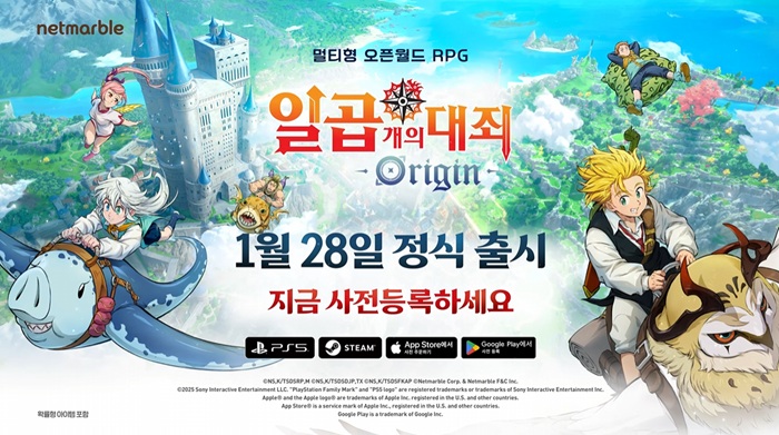 일곱 개의 대죄: 오리진은 2026년 1월 28일 PC(스팀) 및 플레이스테이션5, 모바일 플랫폼에서 정식 서비스를 시작한다.