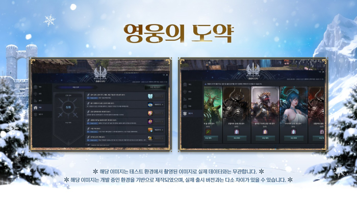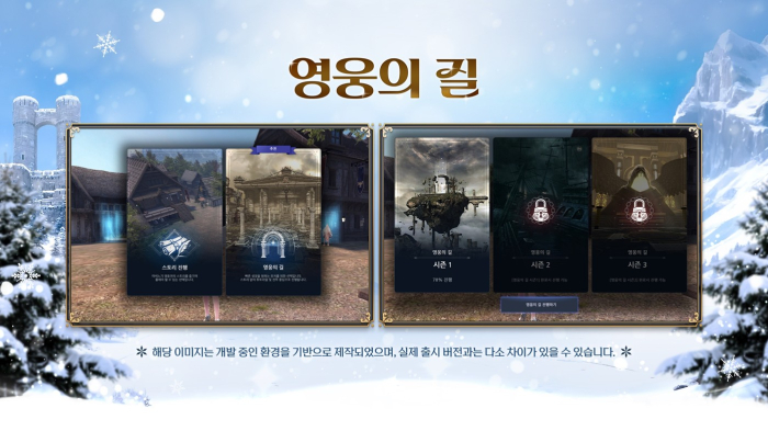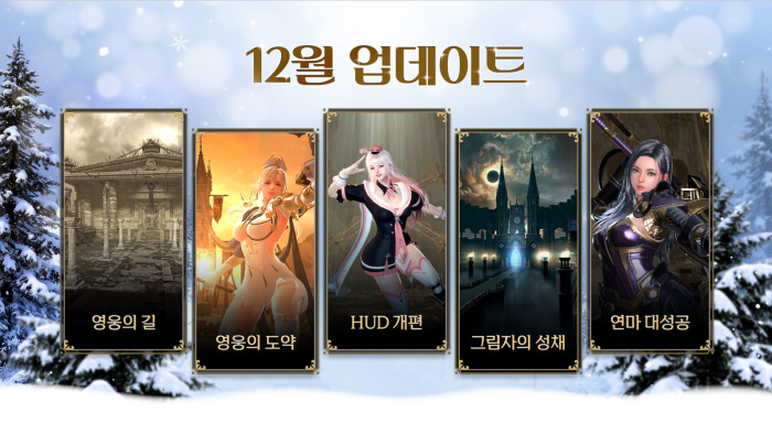 12월에는 '플레이 경험 쾌적화' 그리고 '성장의 도약'을 키워드로, 내실을 다지는 대규모 업데이트가 진행된다. 먼저, 신규·복귀 이용자뿐 아니라 신규 캐릭터 육성을 고민하던 이용자들도 부담 없이 성장에 착수할 수 있도록 설계된 새로운 성장 시스템 '영웅의 길'을 추가한다. 기존의 반복적 이동과 로딩, 장비 교체와 스킬 세팅 등 불필요한 요소를 최소화해 전투 흐름만 이어지는 구조로 정비하며, 성장 단계에 맞춰 장비 능력치 보정과 스킬 자동 습득이 이루어져 이용자는 전투에만 집중할 수 있다. 각 시즌의 핵심 보스 전투를 연속적으로 경험할 수 있으며, 전투 중 등장하는 실전형 튜토리얼을 통해 보스 공략법과 전투 매커니즘을 자연스럽게 익힐 수 있다.