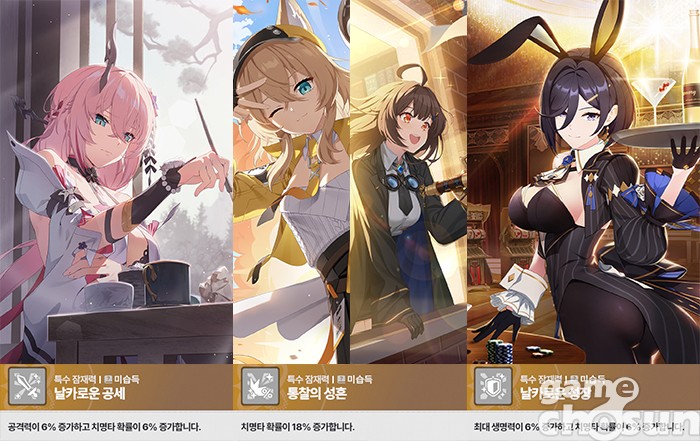 치명타 확률 관련 스킬을 가진 구원자는 자신만 강화하는 트리쉬와 바니걸 클레어, 아세라, 릴리, 루나, 아군을 강화하는 샤를과 타냐가 있다.
