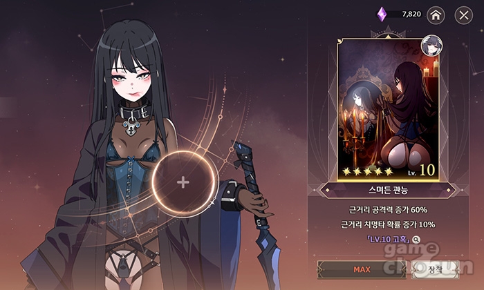 대신 이 캐릭터는 공명 카드 '스며든 관능'의 성능이 발군입니다. 근거리 공격력과 근거리 치명타 확률을 올려주기 때문에 기사 캐릭터라면 부담 없이 착용할 수 있습니다.