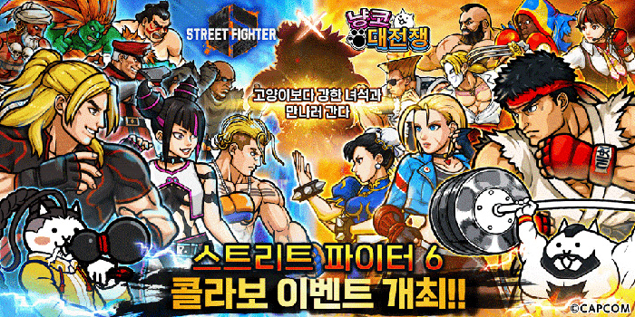 [자료제공 = 포노스] 주식회사 포노스(대표: 츠지코 요리카츠)는 자사의 타워디펜스 게임 '냥코대전쟁'에서 1월 9일부터 주식회사 캡콤의 대전 격투 게임 ‘스트리트 파이터 6’와의 콜라보레이션 이벤트를 개최한다고 밝혔다.