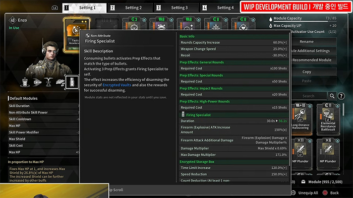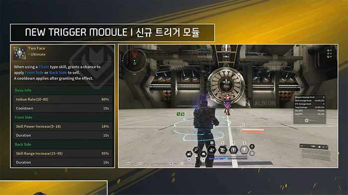 신규 트리거 모듈은 엔조를 위한 전략적 타격과 제이버를 위한 킬 체인, 연쇄 스킬에는 투 페이스이다.