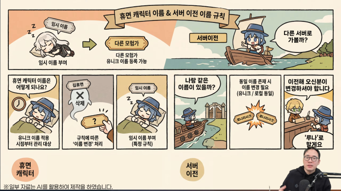유니크 닉네임에 대해 어떻게 관리되는지 설명했다. 우선 다른 서버에 누가 쓰고 있는 이름은 누구도 유니크 이름으로 전환할 수 없다.