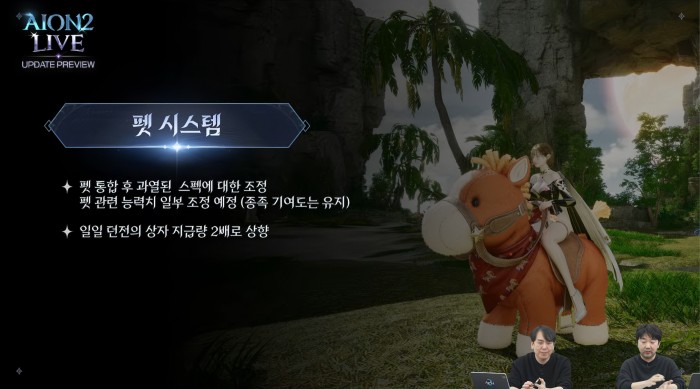 지난 업데이트에서 가장 핫했던 펫 시스템의 서버 캐릭터 내 공유 요소에 대한 수정을 예고했다. 펫 통합 후 과열된 스펙에 대한 조정이 이뤄지며, 펫 관련 능력치를 일부 조정한다. 다만 종족 기여도는 유지할 예정이다. 이와 더불어 일일 던전의 상자 지급량을 2배로 상향한다.